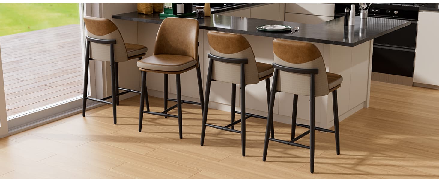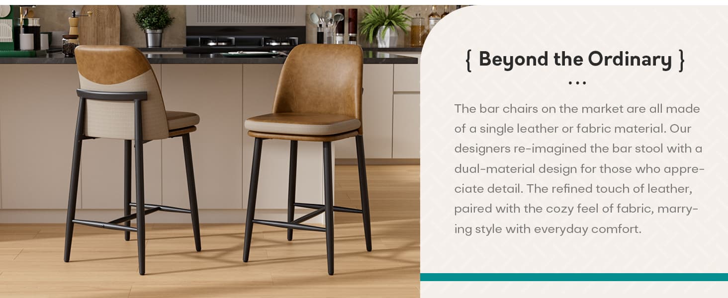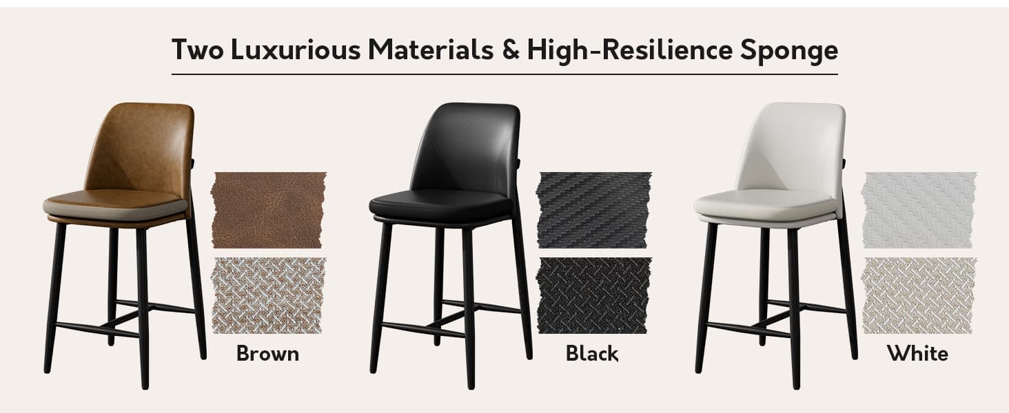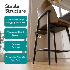 Elevate your space with these dual-material barstools, featuring an ergonomic high-back for all-day comfort, a sturdy metal frame supporting 350 lbs, and a stylish design perfect for kitchen islands, bars, and modern dining areas.