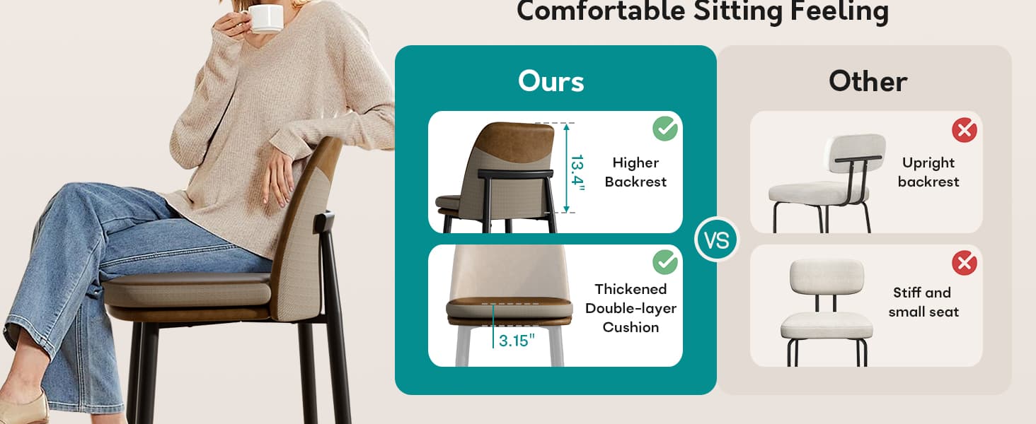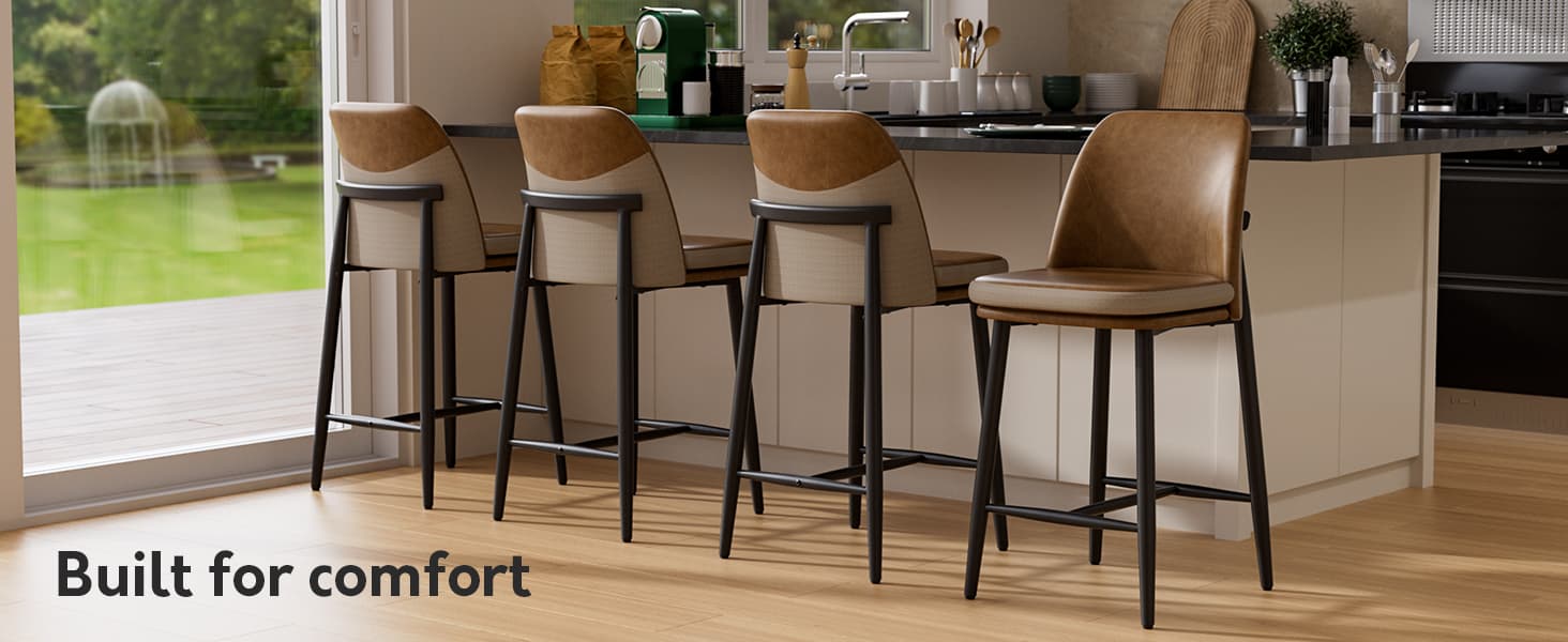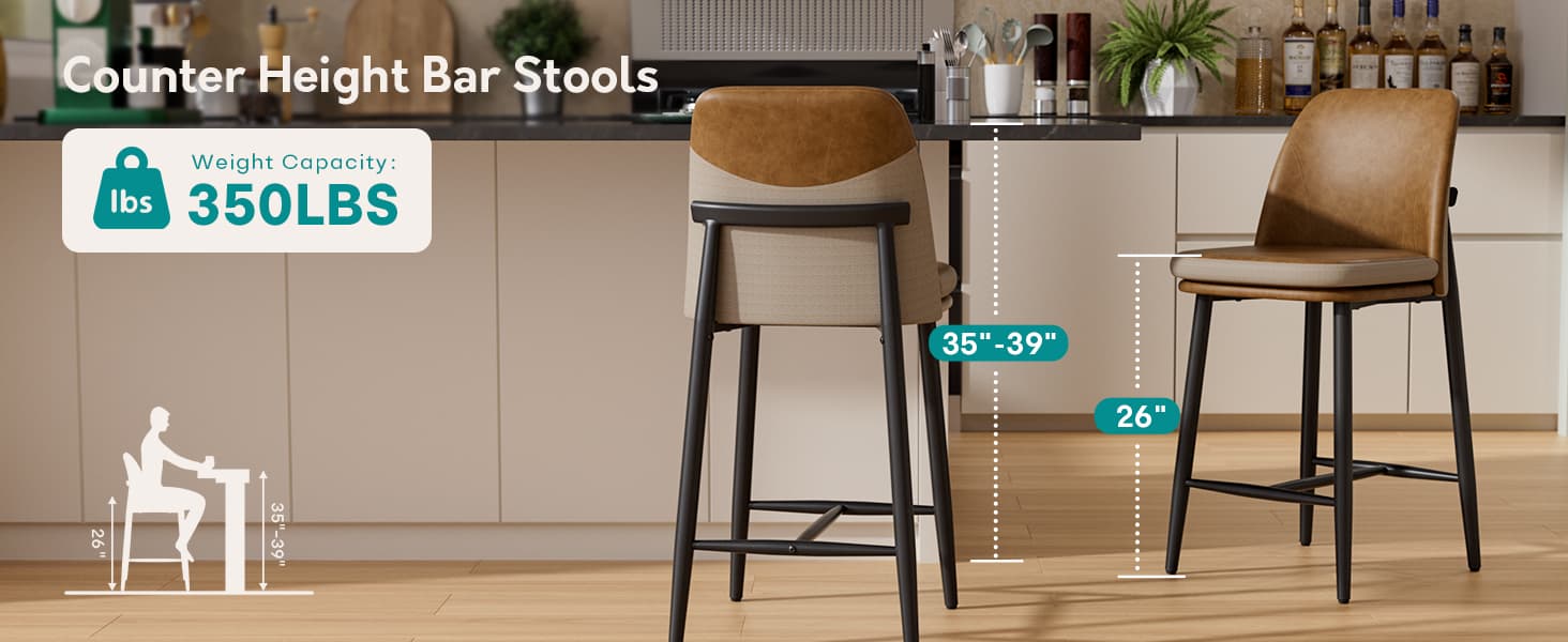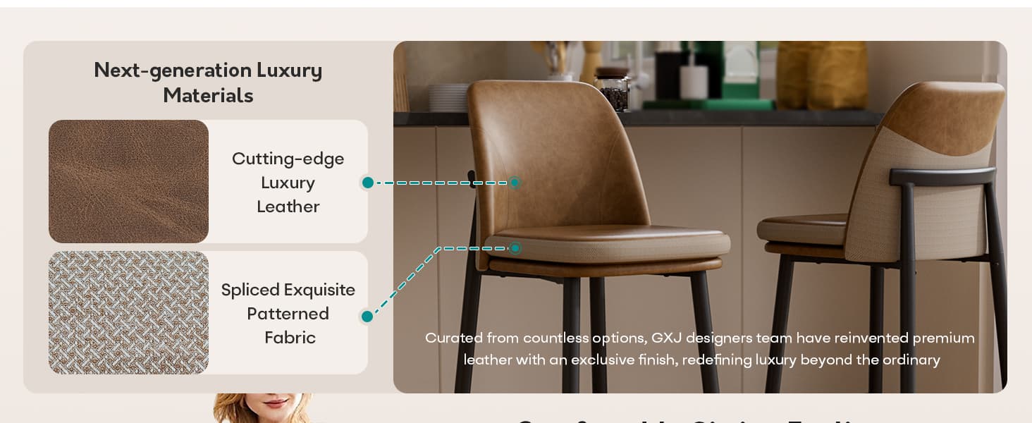 Elevate your space with these dual-material barstools, featuring an ergonomic high-back for all-day comfort, a sturdy metal frame supporting 350 lbs, and a stylish design perfect for kitchen islands, bars, and modern dining areas.
