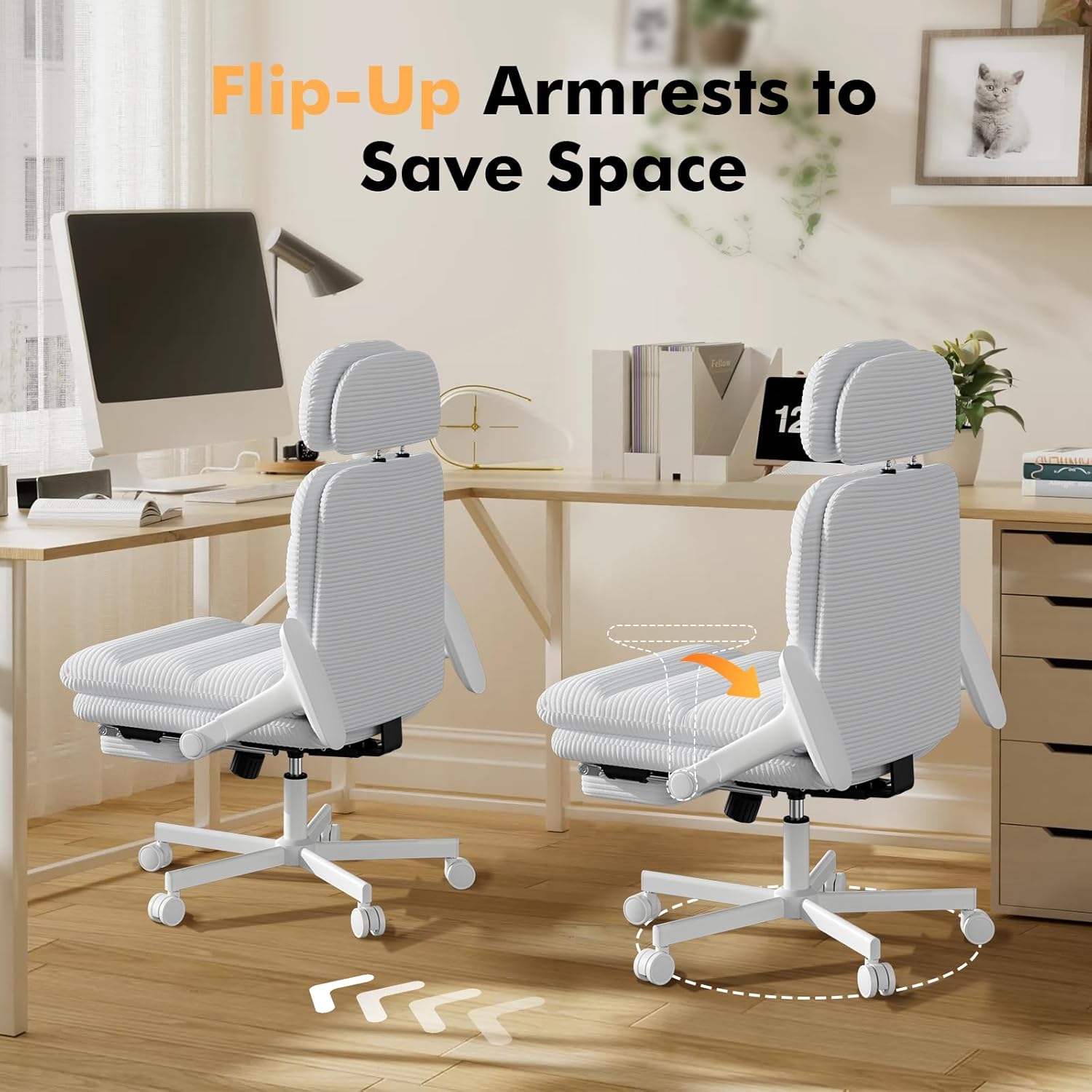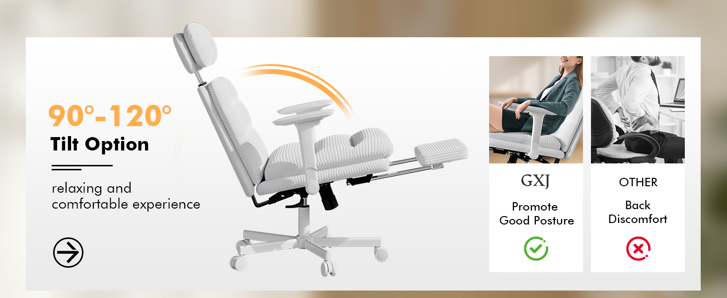 Comfy Cross Legged Office Chair for Extended Sittingļ¼Unlike ordinary cross legged chairs on the market, GXJ ergonomic chair is designed with reversible armrsests, allowing you to have plenty of legroom when sitting cross legged and can accommodate wide range of body shapes. Adjustable headrest provides extra support and relieves neck fatigue. Double back and seat cushions relieve the shoulders and hips of sedentary discomfort.